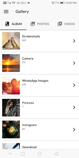 Gallery - Photos & Videos also includes HD Video Player which supports all video formats and comes with modern features like brightness control, volume control & fast foreword videos etc.
