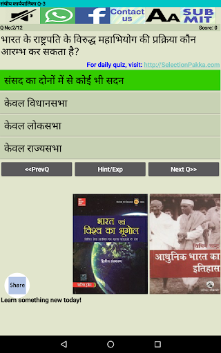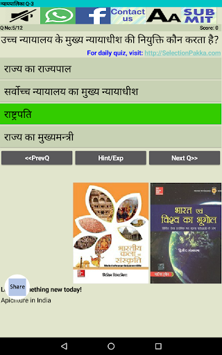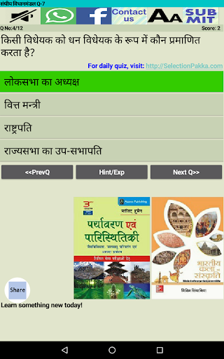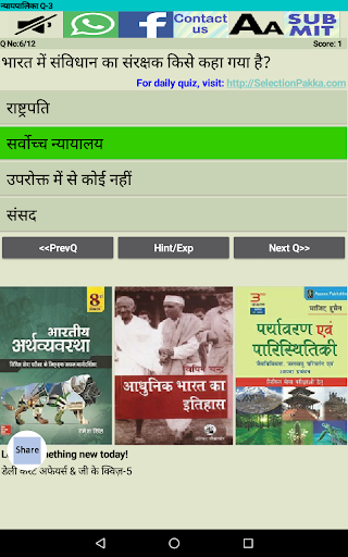 हमें उम्मीद ही नहीं बल्कि पूरा विश्वास है कि यह Indian Polity MCQ (हिन्दी में) एप्प आपको पसन्द आयेगा और इसका अभ्यास आपको सफलता की ओर ले जाने में आपकी मदद करेगा।