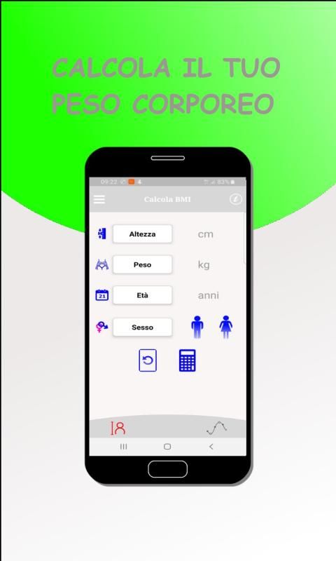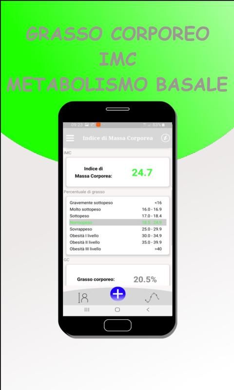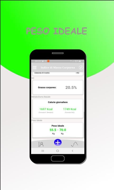 Con questa stupenda applicazione, potrai calcolare l'IMC, conoscere la percentuale di Grasso Corporeo, sapere il tuo Peso Ideale e le calorie giornaliere sulla base di due diverse formule per calcolare il Metabolismo Basale.