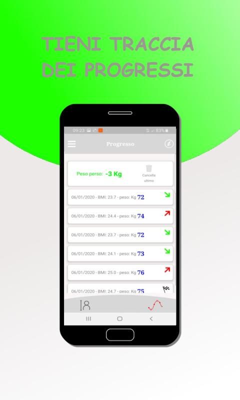 Usando costantemente questa app potrai tenere sotto controllo il tuo peso, oltre che registrare i progressi se l'intento è quello di perdere peso.