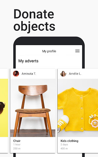 Post an ad in a few seconds to give items for free to community members. By giving an object a second life, you avoid producing new waste, and help someone in need. And by encouraging re-use, you contribute to a more ecological and supportive society.