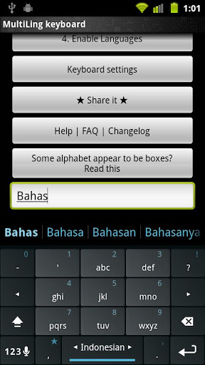 Bahasa Indonesia (Indonesian) dictionary plugin for Multiling O Keyboard. It is not an independent app, so please install OKeyboard along with this plugin.
