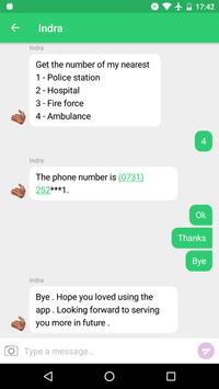 Indra gives you more info about the places of interest like hospitals , supermarkets , parks , gardens , bus station and train station that is nearest with telephone numbers and also navigate to the same in one single click of a button . Getting such prominent info via chat makes it easier for users to get critical contact information of hospitals and the location of the same making it easier for users to navigate easier and safer in times of normalcy and emergency .