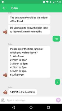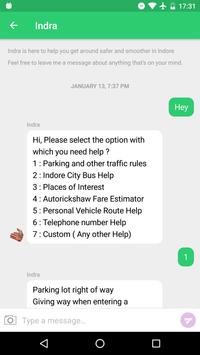 The chat interface is the USP of Indra which makes it extremely easy for people from all ages get onto the app with minimal trouble . People in the 40s and 50s find messaging apps much much more easy to use rather than complex native apps . Indra makes it easier for people from this age get the most of any app for smoother safer travel and also contribute greatly to a safer Indore when it comes to the road .