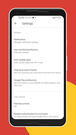 * Play store setting page reference includes(Notification, app download preference, auto-update app, google play instant, parental control etc.)