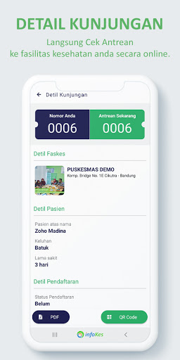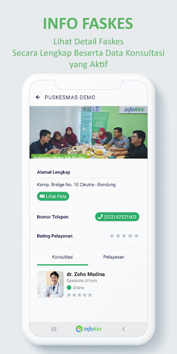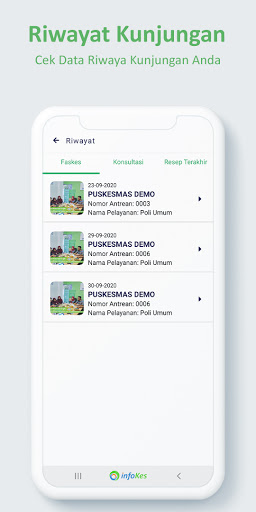 Ang Infokes Mobile ay isang application na gawing mas madali para sa iyo sa mga solusyon sa kalusugan. Gamit ang application na ito, maaari mong mahanap ang pinakamalapit na mga pasilidad sa kalusugan, magparehistro sa mga pasilidad sa kalusugan nang hindi na kailangang pumila kung nais mong maghanap ng paggamot. Maaari ka ring magsagawa ng direktang konsultasyon sa kalusugan sa mga doktor. Infokes Indonesia (Epuskesmas/Eclinic). Kung ikaw ay isang kalahok sa kalusugan ng BPJS, maaari kang magparehistro at kumunsulta nang libre. Br> Magrehistro sa Puskesmas/klinika nang direkta sa pamamagitan ng application nang hindi kinakailangang masanay upang pumunta sa lugar ng serbisyo sa kalusugan. kasaysayan ng iyong pagbisita mula sa medikal na paggamot hanggang ngayon.