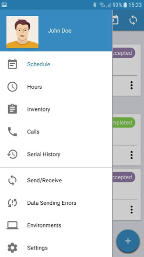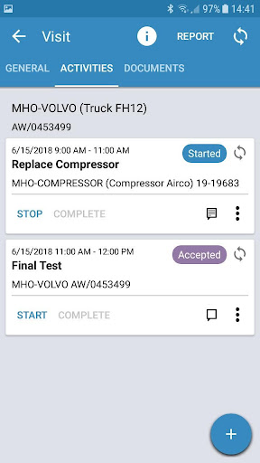 Examples are: the registration of labor, materials, other costs, inspection information, general hours and reporting the customer visit completed. Engineers are also able to register new calls, upload and download images and documents, lookup inventory levels, check installation information and navigate through physical breakdowns.