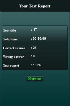 The application is very easy to use and has been designed very carefully keeping in mind the needs of the students. When a student/user makes a mistake the application indicates and also shows the correct answer. Take the Information Technology (IT) tests repeatedly and analyze your improved results each time.