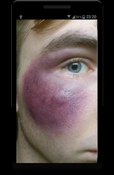 Make a Photo or select one from Gallery. Press the Injury Button in center to add a Injury Item to your Photo. Place it on the right position and scale or rotate it with 2 fingers. Save and share with your friends and family.