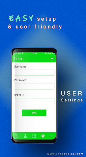 Insaf Voice is an smooth application for all android handsets. Voice quality is good, have all destination route. Insaf Voice is a mobile app for VoIP platform that works as a terminal for making VoIP calls. It utilizes SIP protocol and requires data service of GPRS/3G/4G or WiFi network. This application is designed for VoIP service providers and end users. Service providers should provide their soft switch IP and port and they will get an operator code for their service. Customizable branded solution also provided for service providers. End user requires operator code, user name and password provided from service provider.