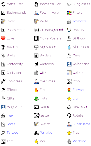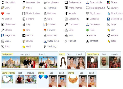 Insert your photos or face in photo frames, hairstyles, wallpapers, backgrounds, effects, movie characters and more. Free photo effects and image filters.