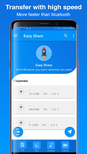 Easy share is a simple and quick share app through which data transfer is very fast. Now you can easily transfer any kind of files separately or in the form of buckets which includes audios, videos, photos, apps and documents (i.e. pdf, word) etc