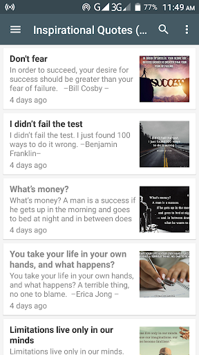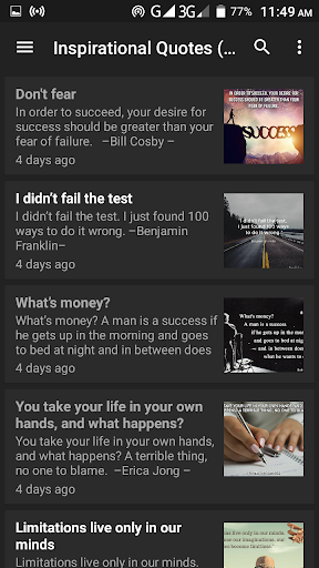 Inspirational Quotes App is the ultimate motivational quotes app for Android. The Inspirational Quotes App delivers new Inspirational Quotes directly to your mobile device each day in a simple and easy to read layout. The goal of this app is to give you a meaningful Inspirational Quote and Motivational Quote to encourage you everyday. You can Favourite, Share and Comment any of the thousands of inspirational Quotes available. Inspire your mind by reading Inspirational Quotes on the go.