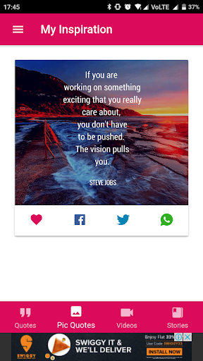 Beinspired App - is an effort to bring inspiring quotes, stories and videos , all at one place. Get Inspired, Inspire Others too..