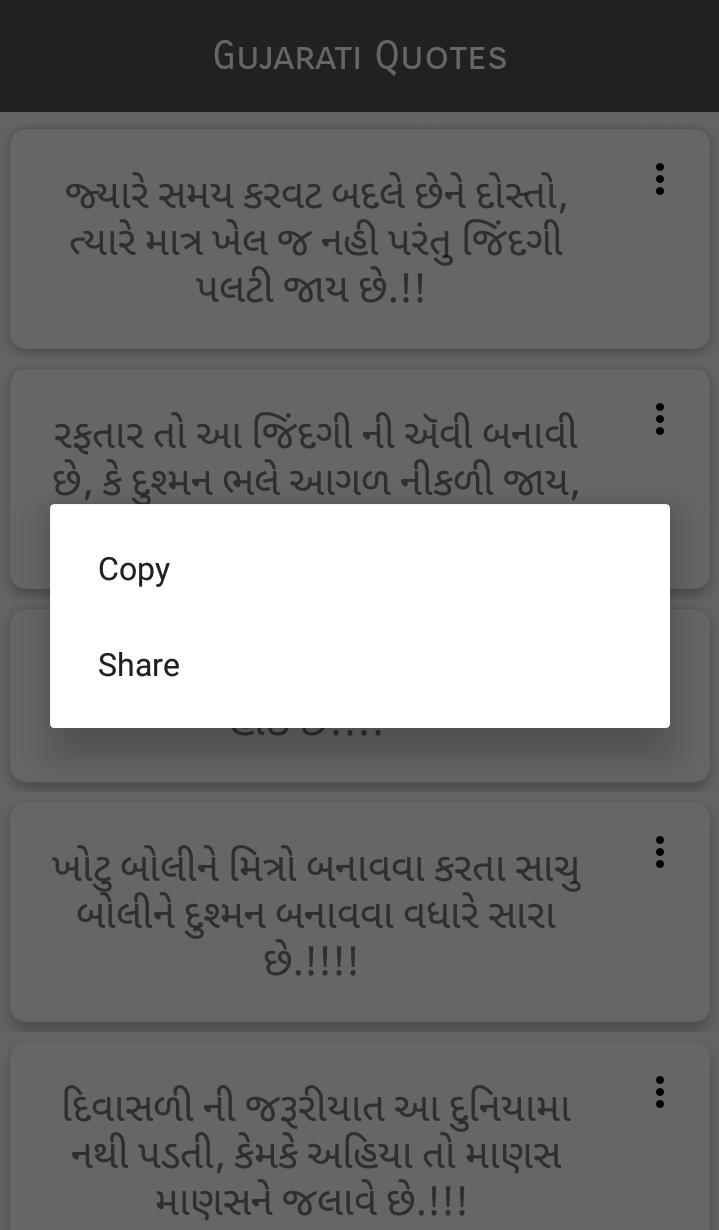 There is also text quotes availble in HIndi, English and Gujarati, which you can easily copy and share and also you can set it as your status.