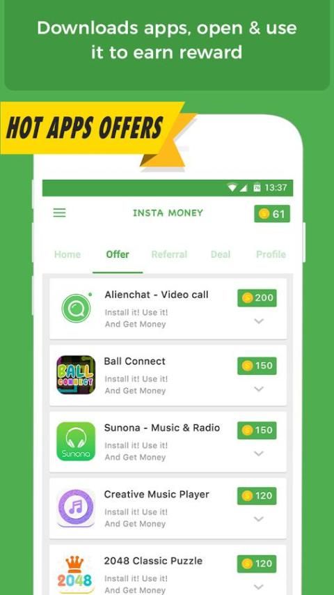 Insta Money is totally free of cost. No any hidden cost, No any registration fee, No annual fee just earn money with it.