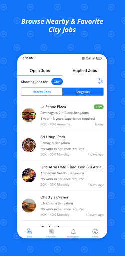 Job seekers can browse and apply to the latest restaurant jobs matching his/her skills and interests anytime, anywhere in just a single tap.