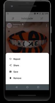 InstaLoader allows you to download any video or photo (single or multiple) in a matter of seconds, it further allows you to repost (share) the content instantly on your Instagram profile.