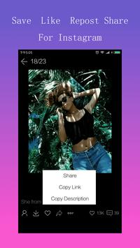InstaSaver will save and repost photos&videos on Instagram easily and quickly.InstaSaver is 100% free, now it is with InstaSaver .Main Features:* Save any photos&videos on Instagram* Repost any