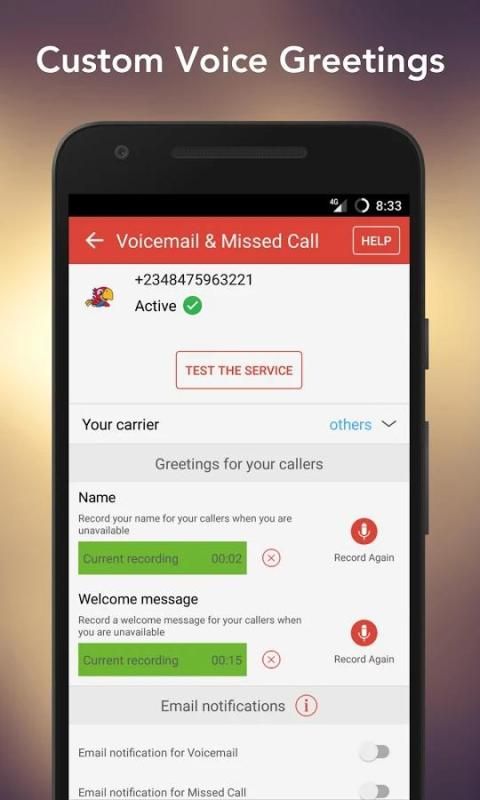 ✓ Receive your Voicemails, Missed Call Alerts and Voice SMS on email