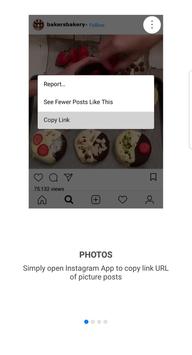 - Copy link URL of a post on Instagram for download and see it bookmarked on this App.