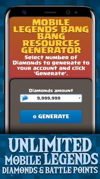 - This application is not affiliated with mobile legend . We do NOT provide any mobile legend diamond, generator or anything other generator, related product.