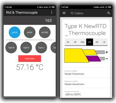 This handy app features the colour codes for a wide range of thermocouples in a wide range of standards on easy to see images. The shown standards are IEC, BS, ANSI, NFE, DIN, and JIS.