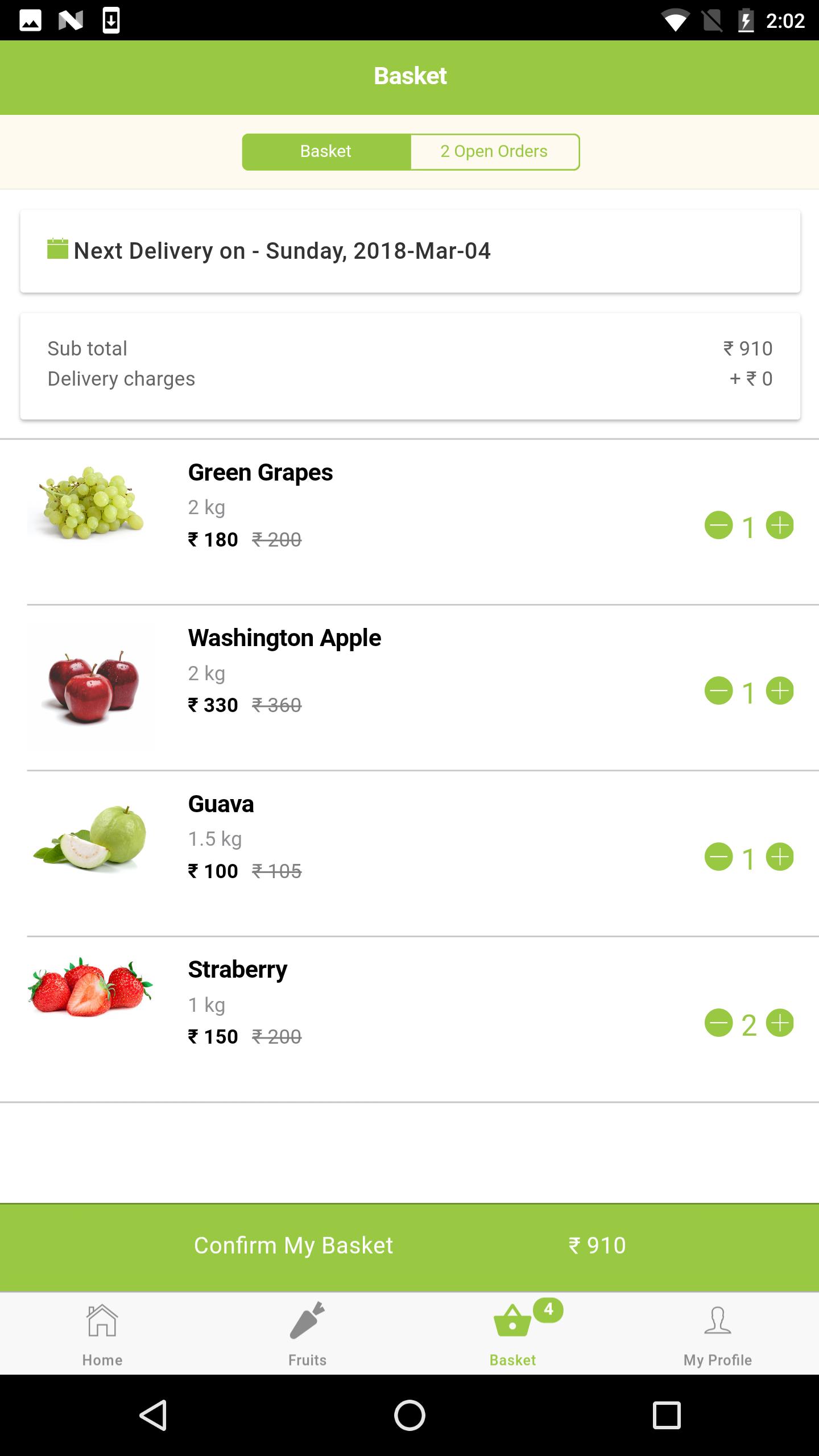 Revamped UI and UX. Now enjoy Vegetables, Sprouts, Exotic Vegs, Kokan Mewa. Managing baskets made easy. Provide feedback about the application to admin directly.