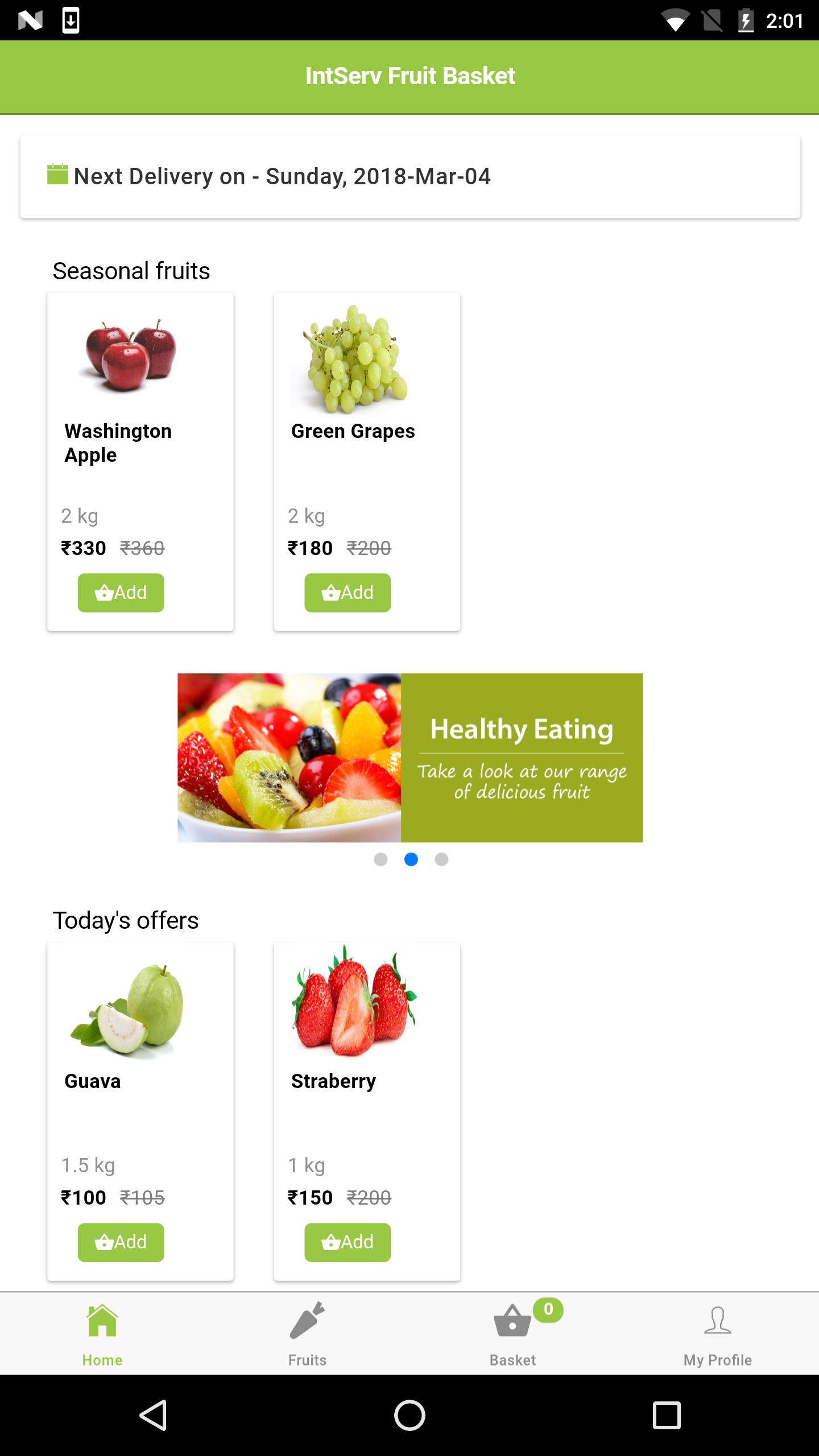 IntServ - Fruit Basket, Delivering Fresh Fruits at your Door Steps. Now available at finger tips. 100% customer satisfaction guaranteed. Eco Friendly packing.