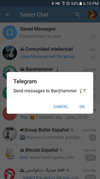 The application is currently designed to work with the Telegram Ban | Hammer bot (@ xxdamage2bot), which is quite practical to use and feature to share interactive content.