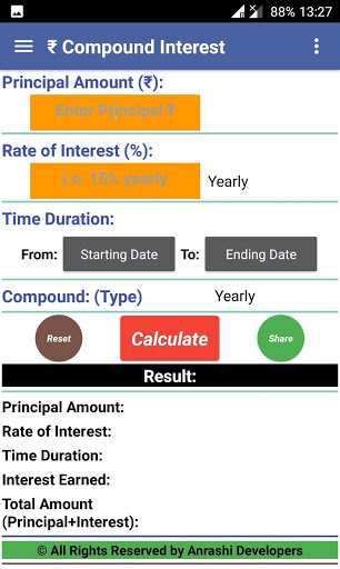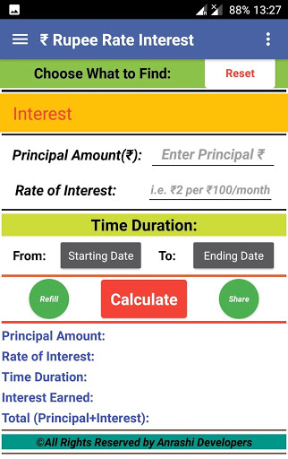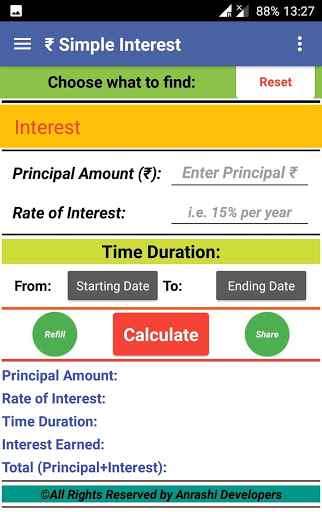 ★ Option to calculate any of variable: Interest, Principal amount, rate of interest, time period.
