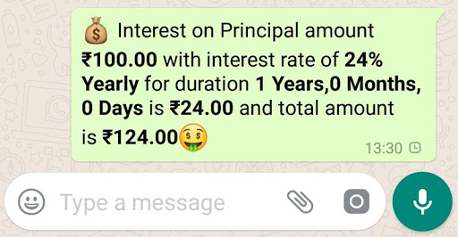 ★ Rupee Rate interest calculation as used in Non-Banking Businesses i.e. Rs. 2 per Rs. 100 per month.