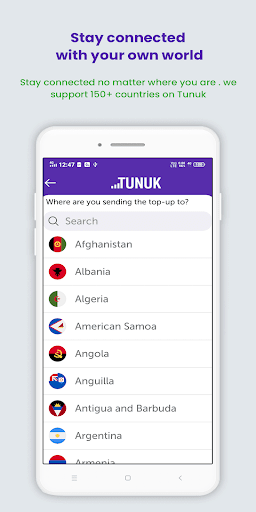 Tunuk is an International Mobile Top up App which offers you the ease of mobile recharge from the comfort of your phone. When you need Mobile talk time or Mobile data, you just need Tunuk Top-Up App