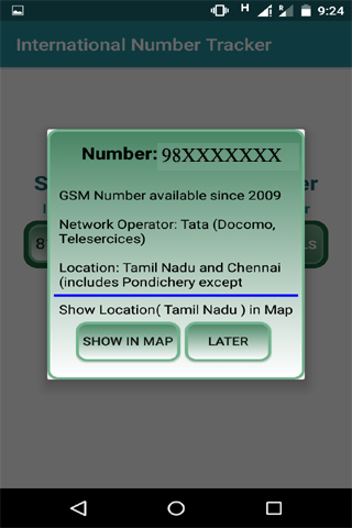 International Number Tracker app provides complete details of any.phone number in the world.