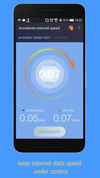 Internet accelerator is the only speed test that lets you test your internet connection on both Wi-Fi and cellular networks, keep track of your speed tests. Internet Speed Meter Lite displays your internet speed in status bar and shows the amount of data used in notification pane. This helps you to monitor network connection anytime while using your device.