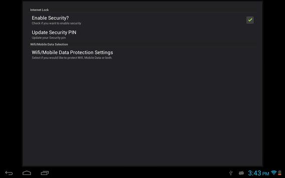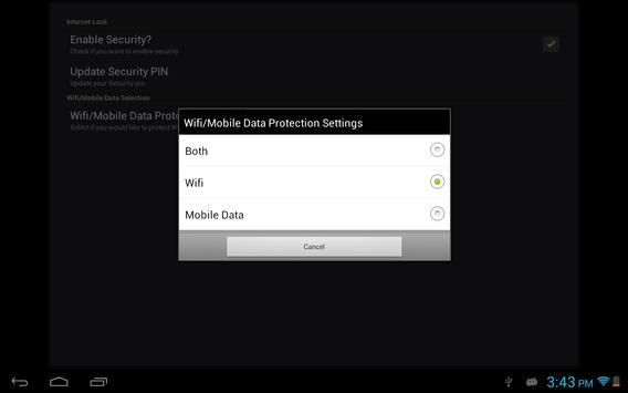 Internet Lock enables you to protect your Wifi and Data Connection by setting up a secret PIN. Nobody will be able to connect Wifi/Data Connection unless they know the secret PIN.