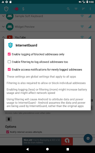 • New application notifications; configure InternetGuard directly from the notification