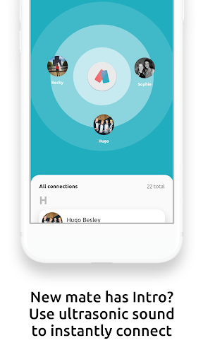 Intro uses ultrasonic technology to FINALLY make connecting with others in person easy. Even if your new mate doesn't have Intro yet, in one tap you can give them your social media and contact info.