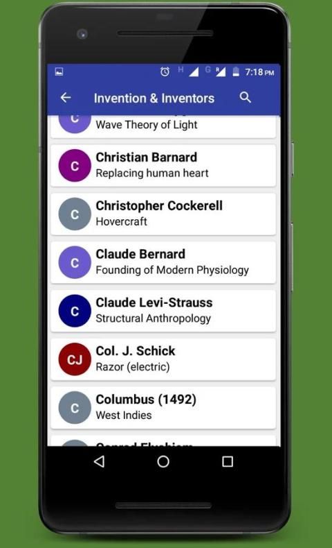 Inventions and inventors is a free and useful Android Application which lists down information about General Inventions in the past. This application will be a handy tool for children to know about many world scientists.