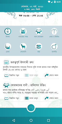 ISLAMIAT features the full Quran with Arabic scripts, along with Bangla pronunciation, Bangla translations and audio recitations. The app also has Salah Timing, Dua, Hijri date, Hadith Books, Tasbih, Qibla locator, Zakat Calculator, and many more ...