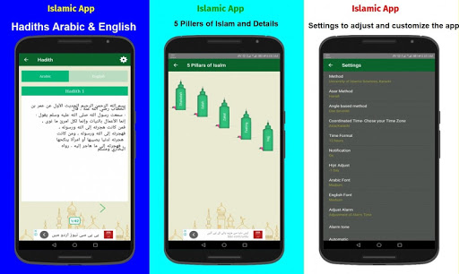 Islamic Prayer Times, Qibla Compass, Islamic Calendar or Hijri Calendar, Al Quran, Duas, Tasbih Counter, 99 Names of Allah, Mosque Finder, Ramadan Times (Sehri and Iftar Timing), Pillars of Islam