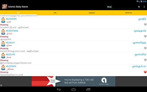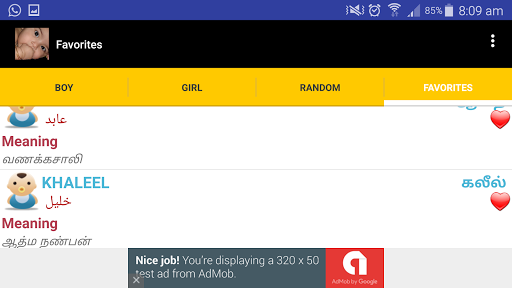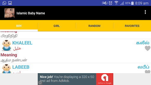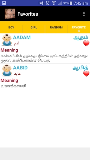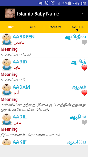 Islamic / Muslim Baby Name with Arabic - English - Tamil with Meaning