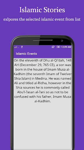 Islamic Events Calendar Alerts inform through automatic alerts about the current day Islamic events and on tap it will explore the details of that event. List is according to Hijri date that helps users to follow Islamic activities using Hijri calendar.