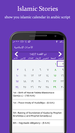 You can select Arabic month and find all the events enlisted below the calendar. Tap on an event and you should find out the details about the selected event.