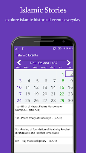 Download Islamic History Calendar - Hijri Calendar Alerts application to inform you about Islamic calendar with Muslim events information. Shows all the Islamic historical events in list below the calendar. Focus on the life time important and popular events of our beloved Prophet Muhammad (PBUH) and his companions’ activities.