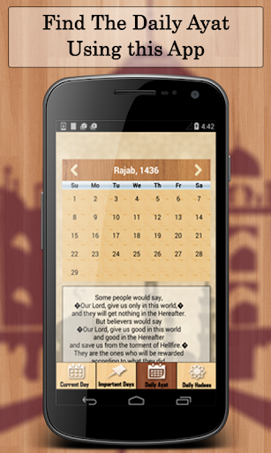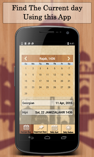 Islamic Hijri calendar App let you view the Current Islamic Calendar (Hijri) Dates and Events along with the Gregorian Calendar Dates. This application is very beneficial for our Islamic and Muslim community to find the proper days on which to observe the annual fast (Ramadan), Hajj and other Islamic festivals.You can use this application to convert Hijri A.H. and A. D. (Gregorian) dates using this easy and simple to use Android application. It will be useful for determining the approximate Western equivalent for an Islamic calendar date and can also be used for converting historical Islamic calendar dates into Western calendar dates.The best Android conversion tool from Gregorian calendar dates to the Hijri dates.It is one of the best utility and accurate tools used by billions of Muslim all around the world. This app offers a beautiful user interface with its classic professional design, colors and calligraphyAll Islamic events are organized by Hijri dates. Therefore it is important for every Muslim to have knowledge of Hijri date.