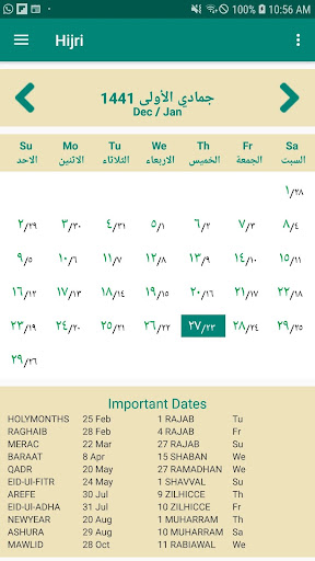 Islamic calendar dates depend on Moon therefore expect slight error in islamic dates.