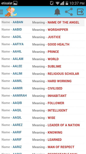 Choose this app to find the largest collection of beautiful girls and boys names. If you like this app, please provide with your positive comments & good ratings and remember us in your daily prayers and duas.
