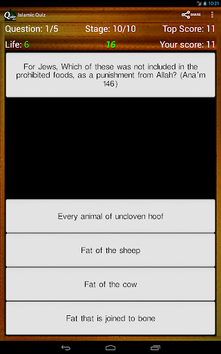 A stage contains only 10 questions, through out the game only 100 questions will be asked, rest of the questions are kept for shuffling. Each time you repeat the game, you will be asked with different questions, until you attend all of the available questions. The current version of the App contains about a thousand questions, up coming versions will include more and more questions, In Sha Allah.