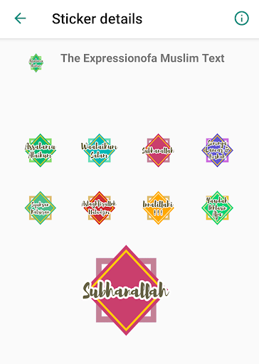 This sticker pack is made to make it easy to send greetings or other Islamic sayings with Arabic writing and transliteration.